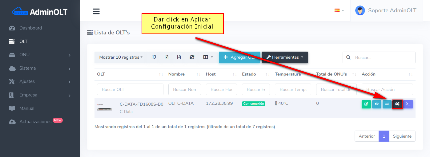 1 Ir a Lista de OLT