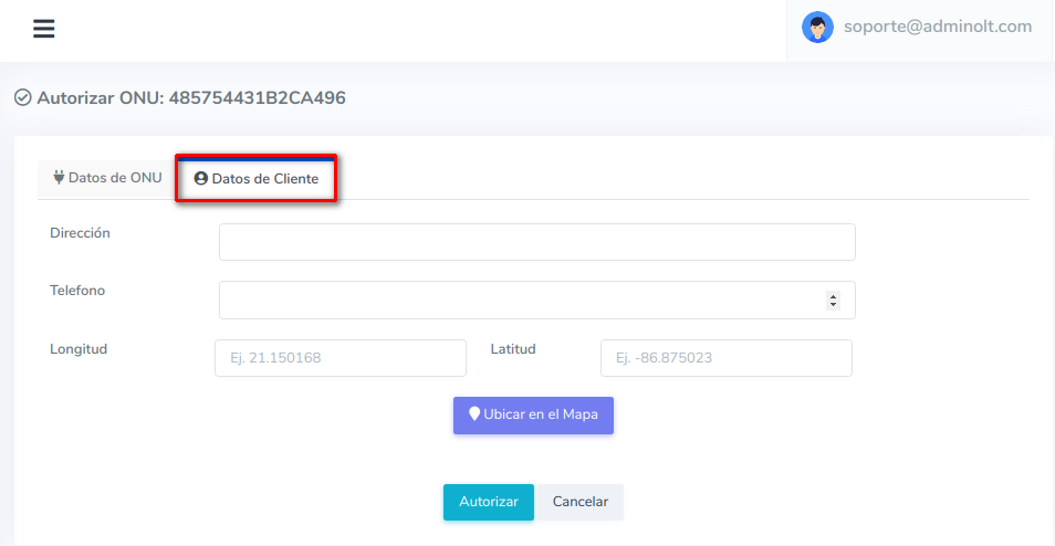 4Despues de guardar los datos de la ONU, se nos redirigira a la vista de ONU's autorizadas donde podremos ver las ONU's que hemos autorizado.