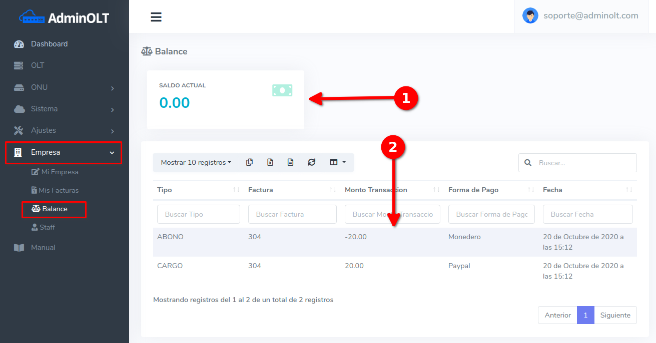 - Balance: El Balance a vuelto a un total de 0 al ser usado los 5 usd que teniamos anteriormente para abonar a la nueva factura.