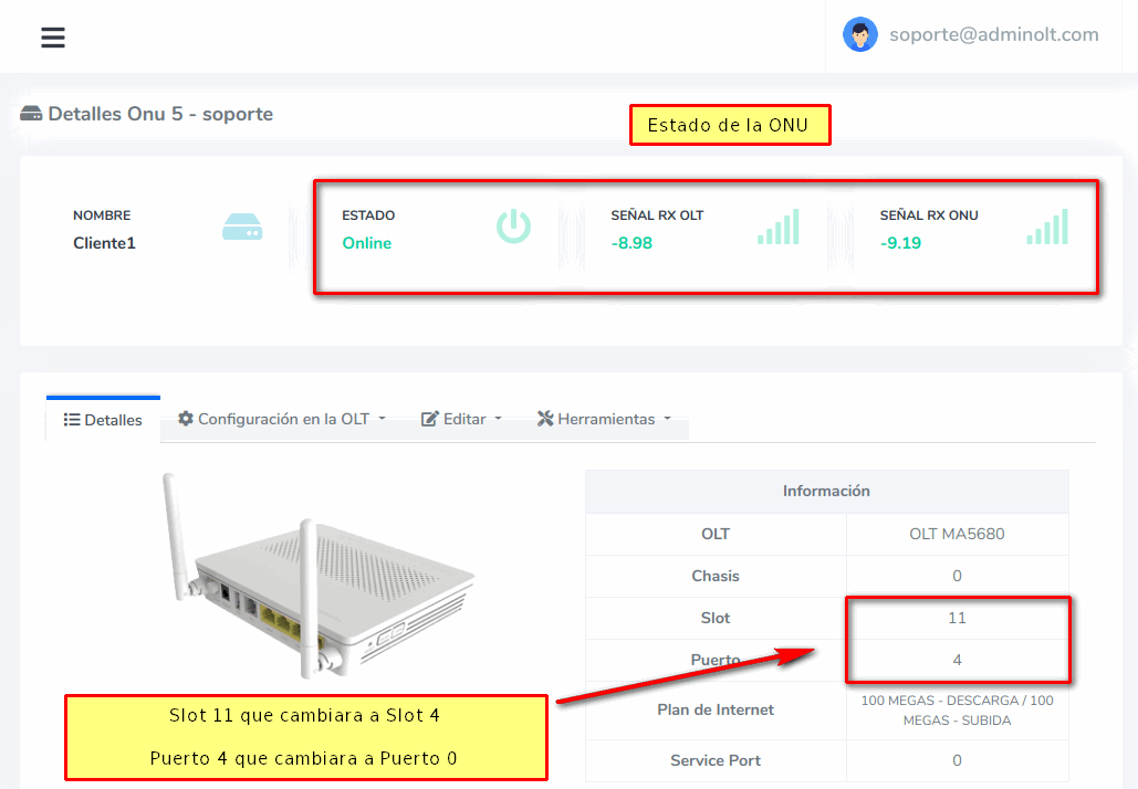 Para editar el Slot de una ONU en la OLT existen 2 formas de hacerlo: