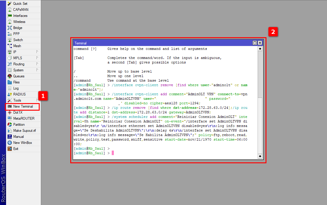 4Pegamos en la terminal de su Routerboard el script que copiamos y verificamos la conexion.