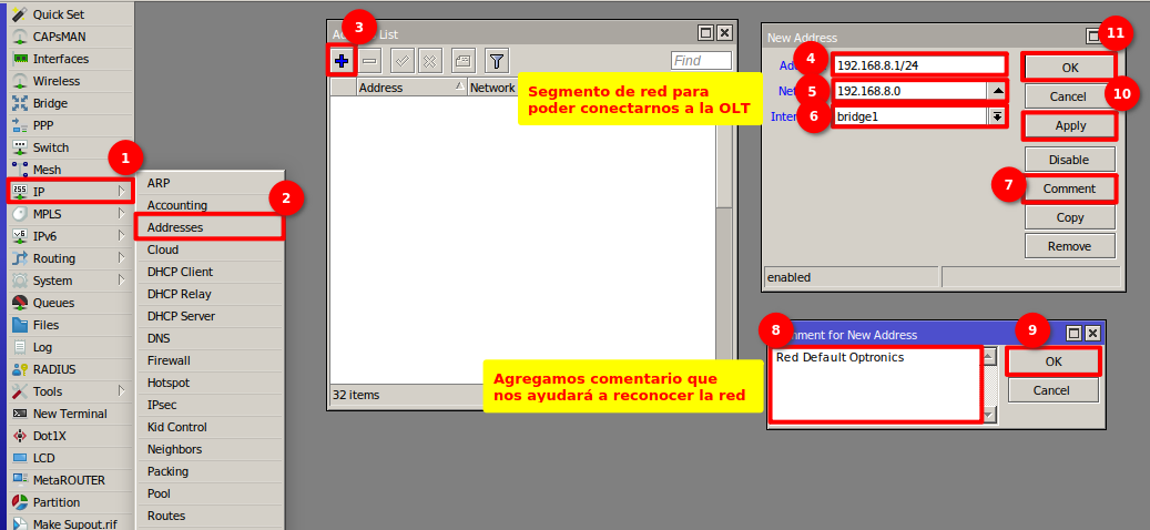 Configuración en RouterBoard MikroTik para OLT Optronics