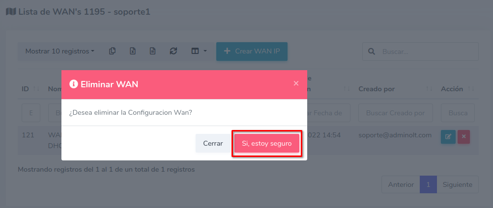 Al hacer esto, la configuración se borrará de la ONU y del sistema AdminOLT.