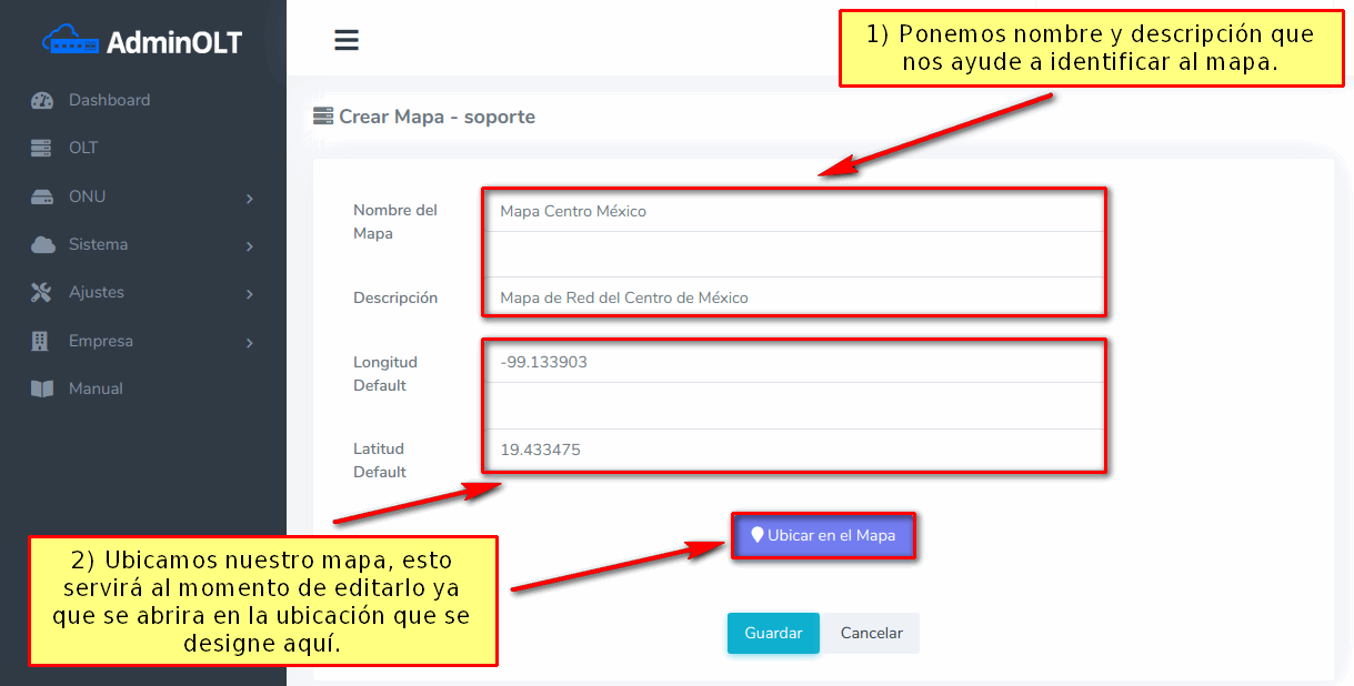 Pasos para crear un mapa en AdminOLT
