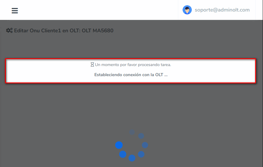 5 Esperamos que AdminOLT se conecte con su OLT y haga los cambios.