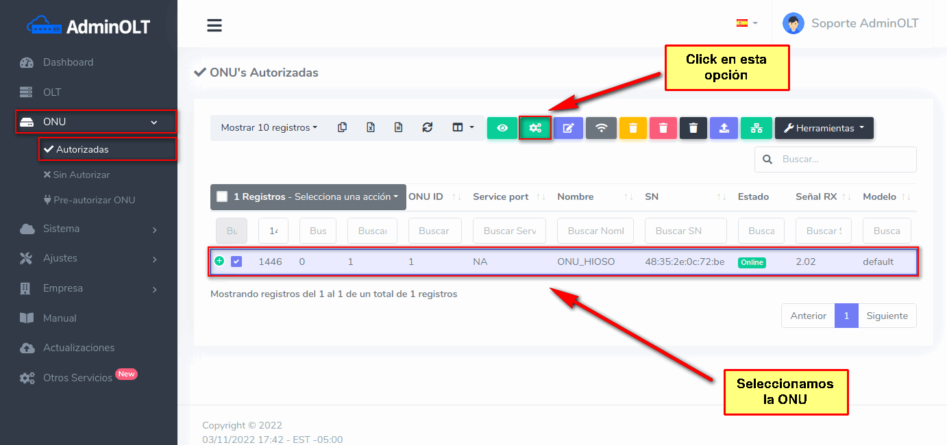 Pasos para editar información de ONU Autorizada por SN