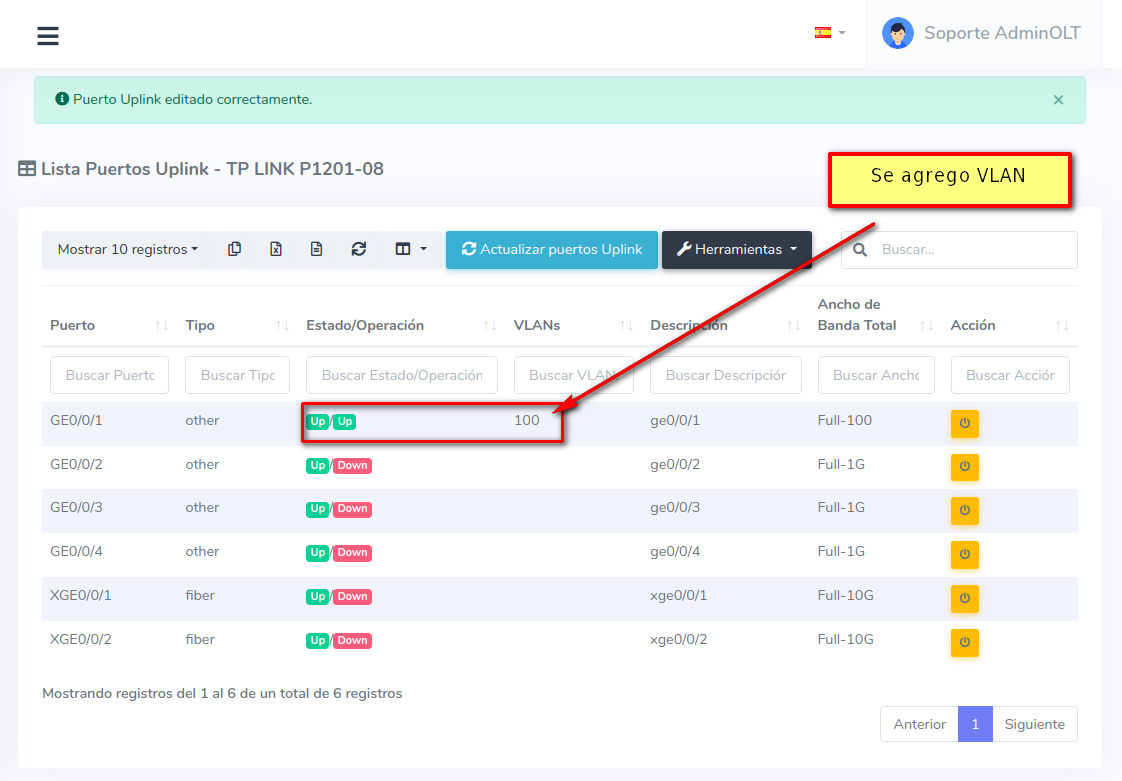 Habilitar puerto UPlink TP-Link