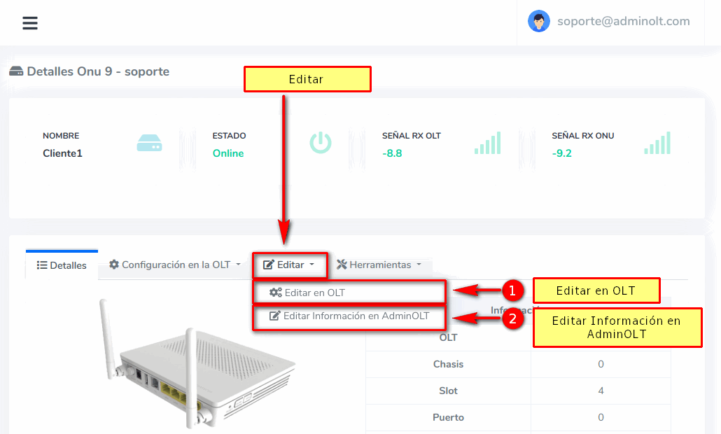 - Editar Información en AdminOLT