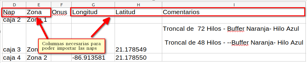 Importar Naps desde Excel