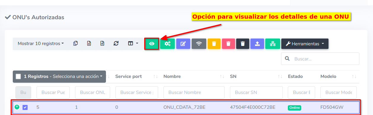 1Ingresé a Onu > Pre-autorizar Onu