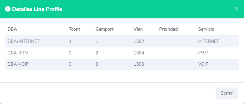 Es necesario que ingresemos a nuestra OLT y creamos los DBA que utilizaremos. Para este ejemplo, vamos a crear los siguientes DBA.